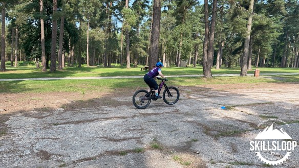 I really enjoyed the blue, and was kind of gutted I only got to ride it once. It seemed to have a bit more of a fun factor, and was more rewarding for the climbs, but it’s possible that I was feeling particularly well disposed as it had finally stopped pissing it down, and I’d just eaten cake. I did plot a second lap of the blue, but I realised that my battery was a little low, so I played around on the skills course and did a few laps of the green.